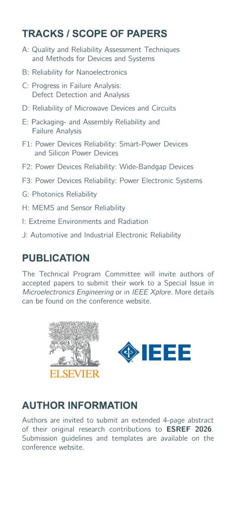 Researchers, engineers, and practitioners are warmly invited to submit their latest work on reliability, failure analysis, and characterization of electronic components and systems.