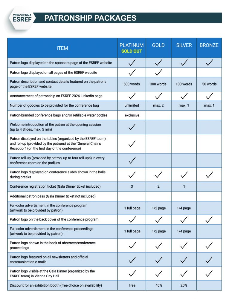 We warmly invite you to become a Patron (Sponsor) of ESREF 2026 – the 37th European Symposium on Reliability of Electron Devices, Failure Physics and Analysis, taking place in Vienna, Austria, from September 21-24, 2026.